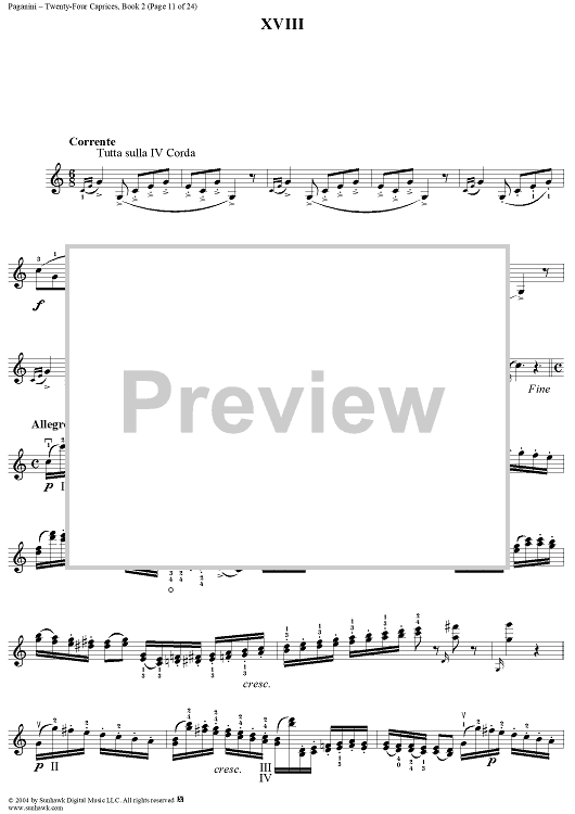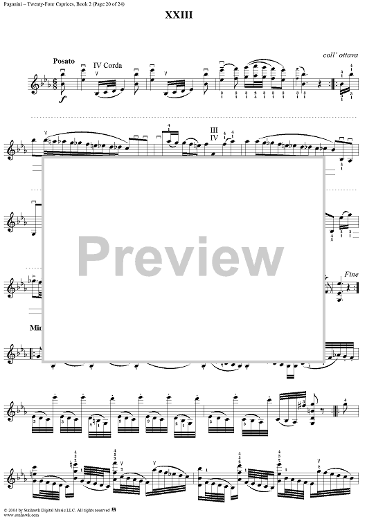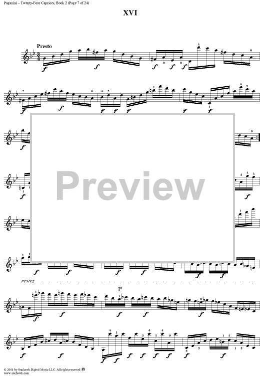 Digital Sheet Music for Twenty-Four Caprices: Nos. 13 - 24 by Niccolò Paganini scored for Violin Solo; id:310137