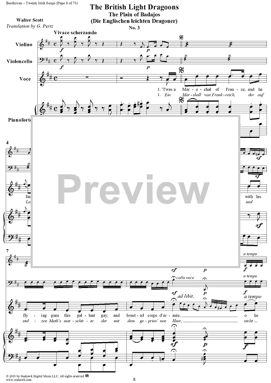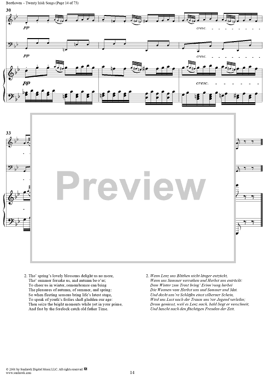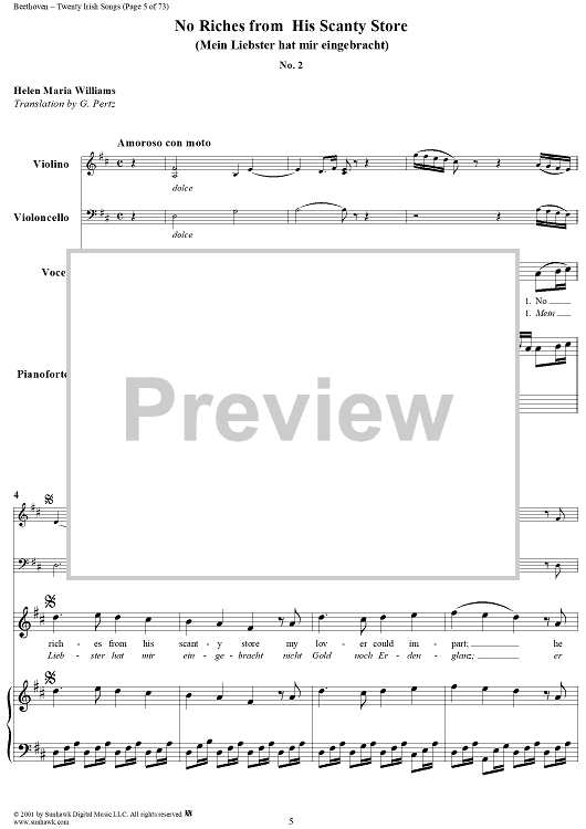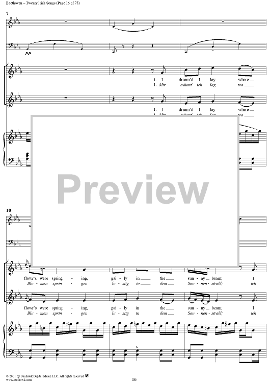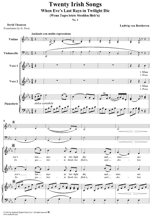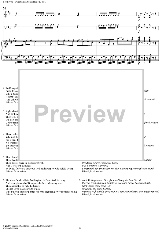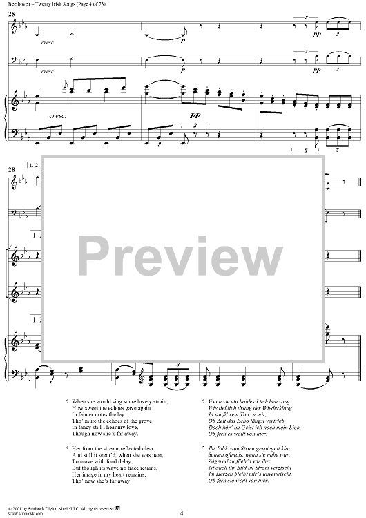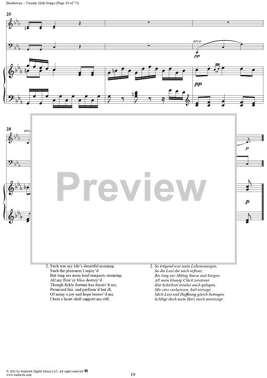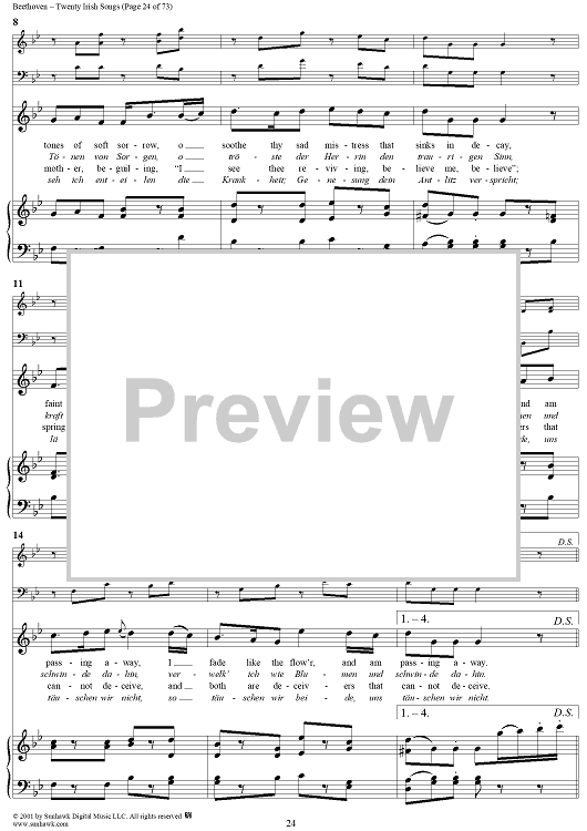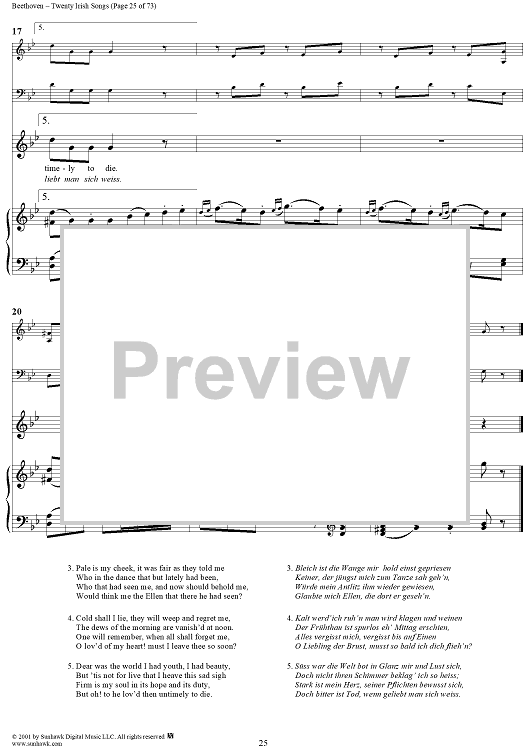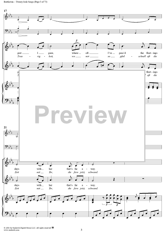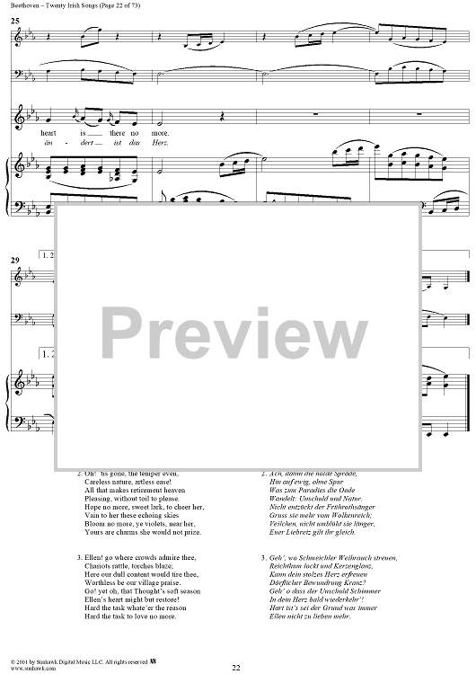 Digital Sheet Music for Twenty Irsiche Lieder by Ludwig van Beethoven scored for STB Choir/Violin/Cello/Piano; id:273407