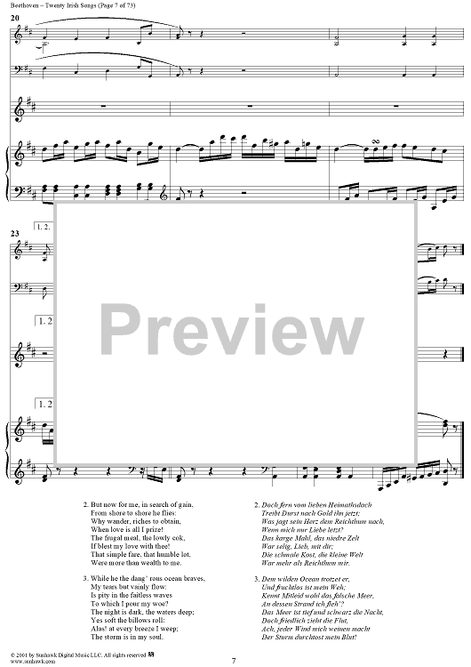 "Twenty Irsiche Lieder" Sheet Music by Ludwig van Beethoven