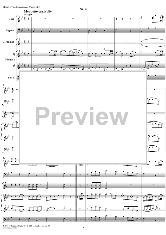 Digital Sheet Music for Two Contredances, K448c (K463) - Full Score by Wolfgang Amadeus Mozart scored for Orchestra; id:292311