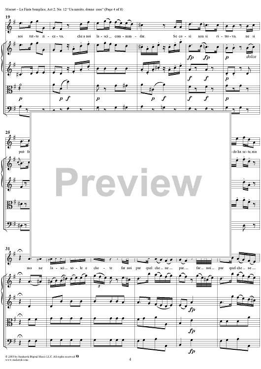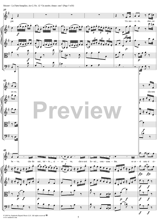 ""Un marito, donne care", No. 12 from "La Finta Semplice", Act 2, K46a (K51) - Full Score" Sheet Music by Wolfgang Amadeus Mozart