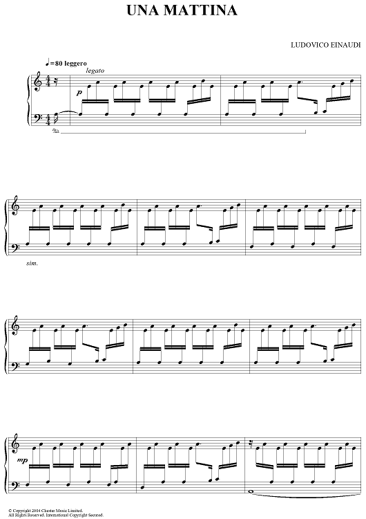 "Una Mattina" Sheet Music by Ludovico Einaudi