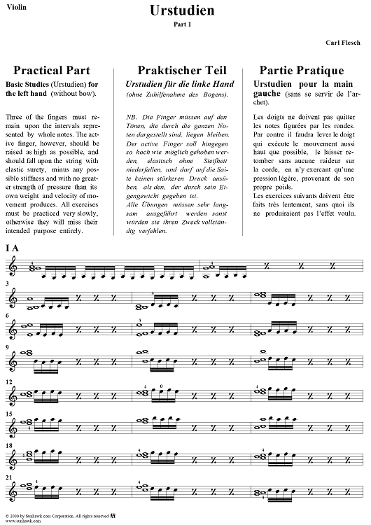 Digital Sheet Music for Urstudien, Part 1 by Carl Flesch scored for Violin Studies; id:269969