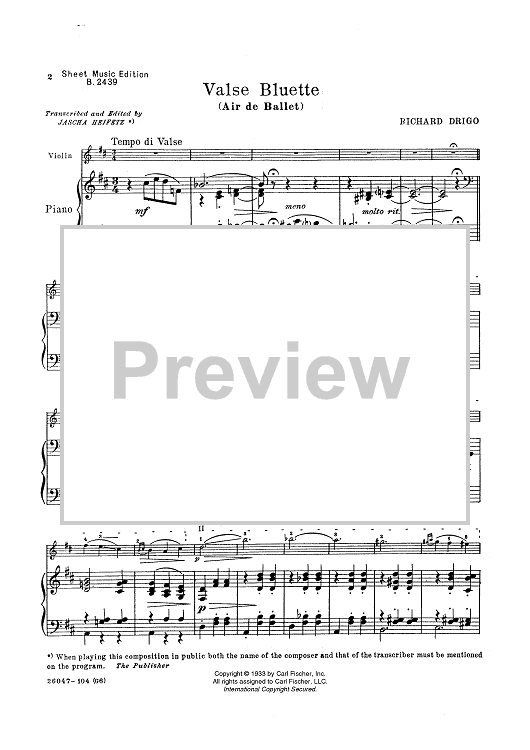 "Valse Bluette (Air de Ballet)" Sheet Music by Riccardo Drigo