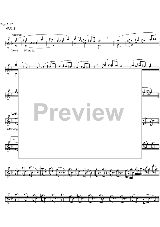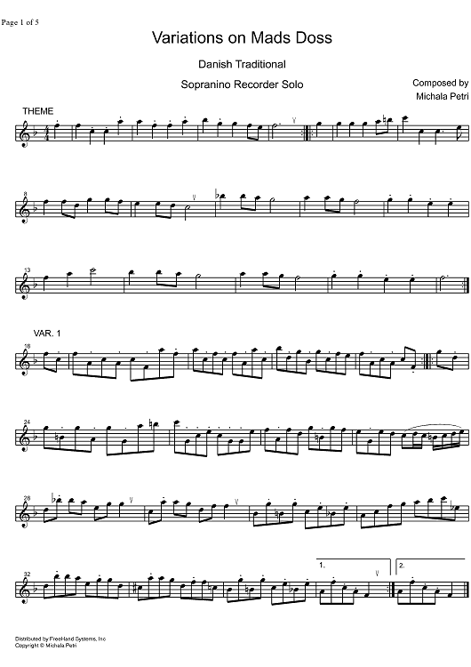 Digital Sheet Music for Variations on Mads Doss by Michala Petri scored for Sopranino Recorder; id:325146