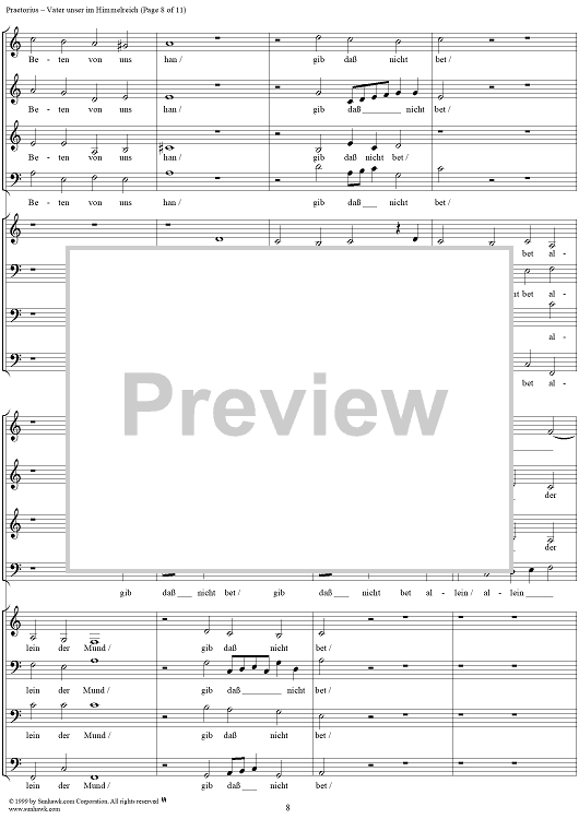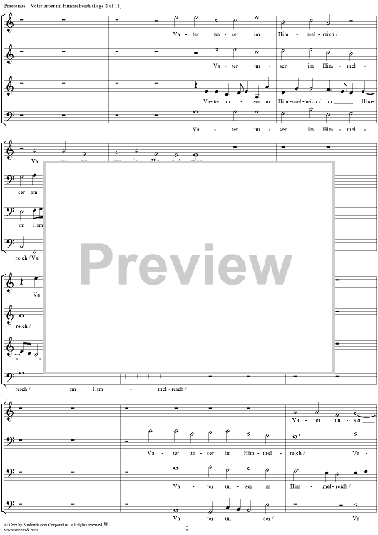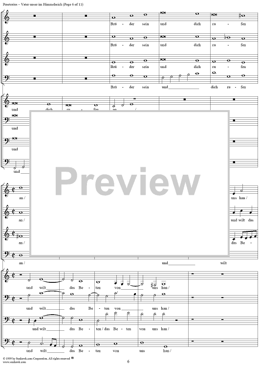 Digital Sheet Music for Vater unser im Himmelreich by Michael Praetorius scored for Mixed Chorus; id:254726