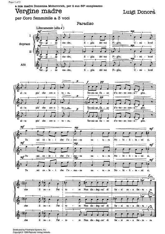 Digital Sheet Music for Vergine Madre by , Luigi Donorà scored for Female Chorus; id:333966