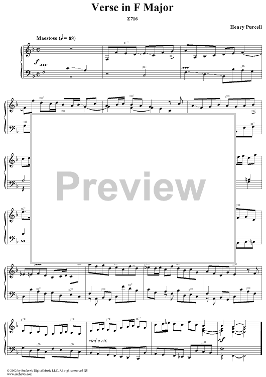 Digital Sheet Music for Verse in F Major by Henry Purcell scored for Organ Solo; id:254899