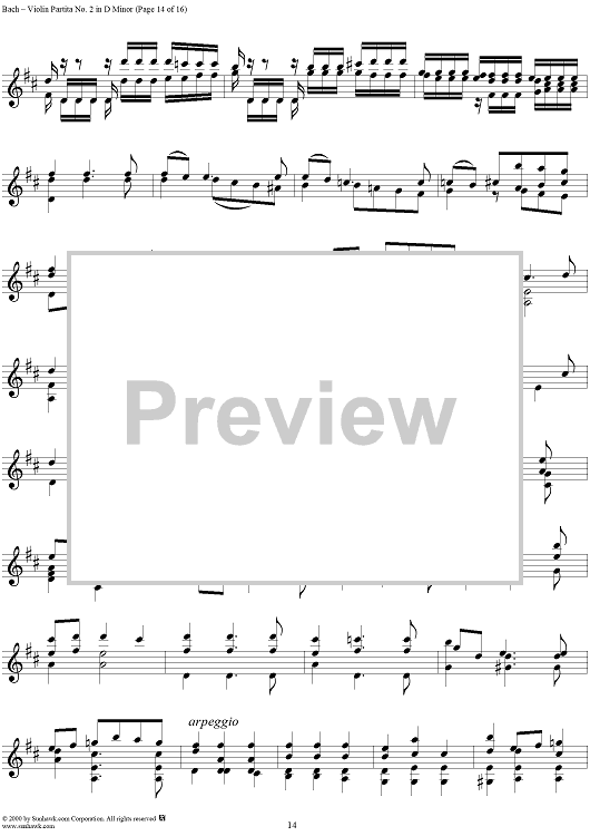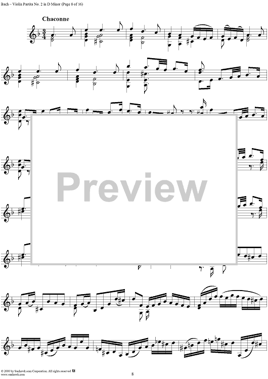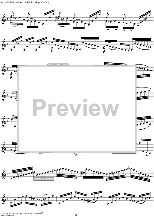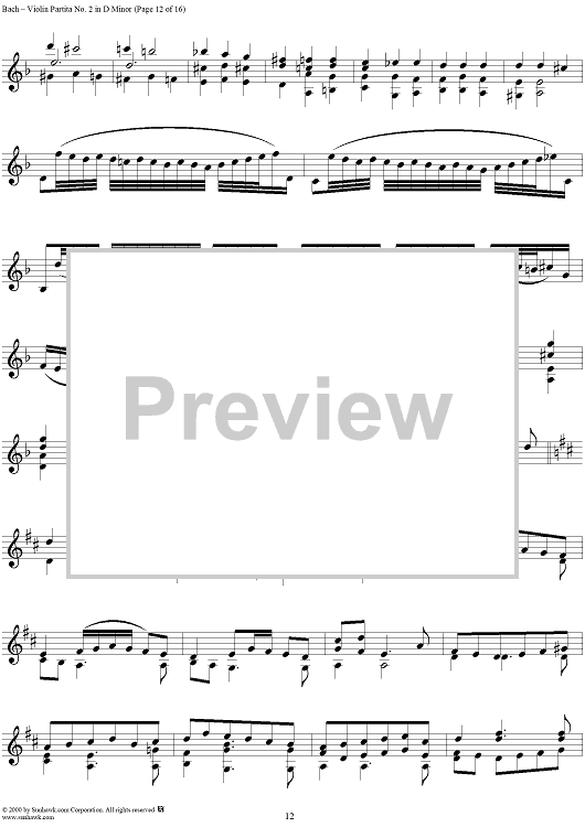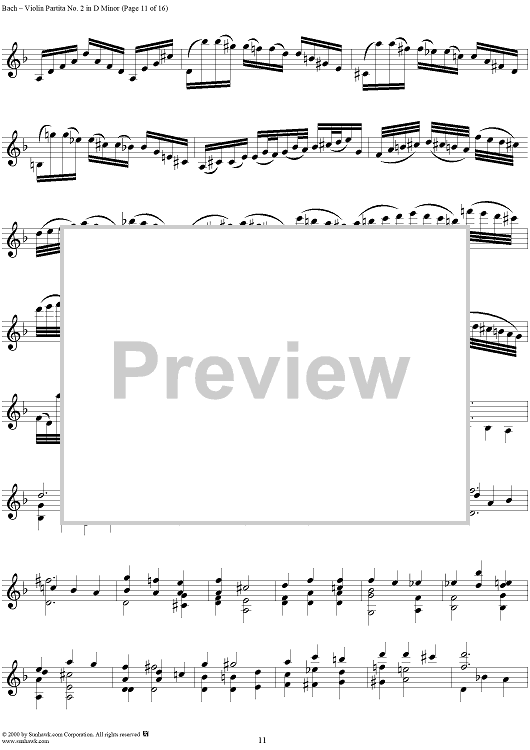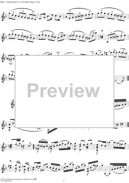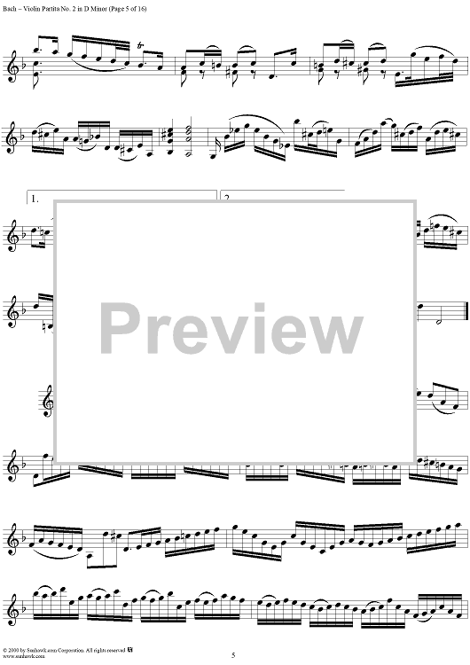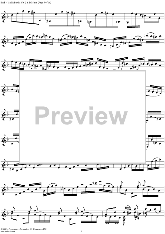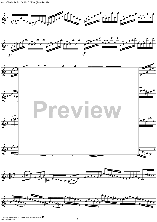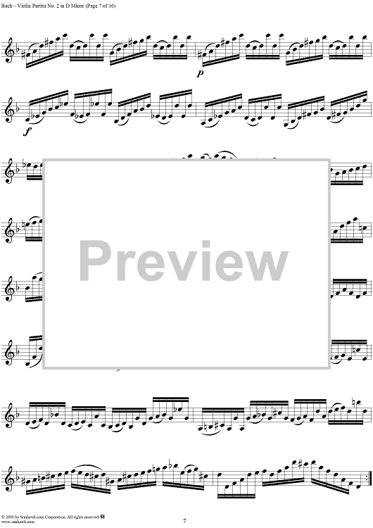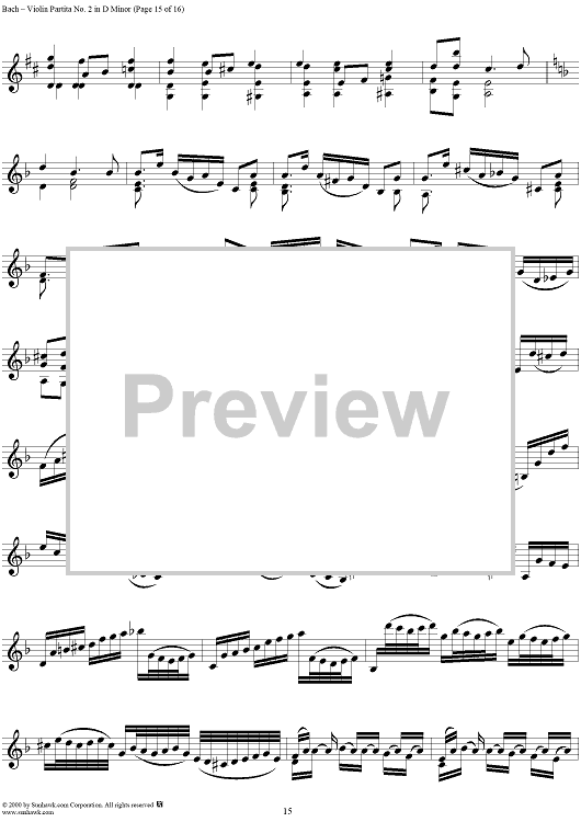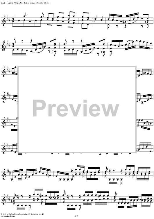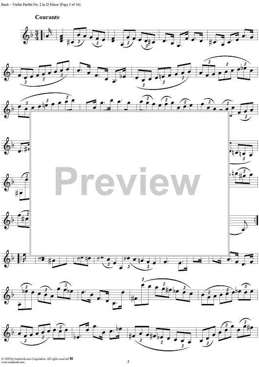 Digital Sheet Music for Violin Partita No. 2 in D Minor by Johann Sebastian Bach scored for Violin Solo; id:191555