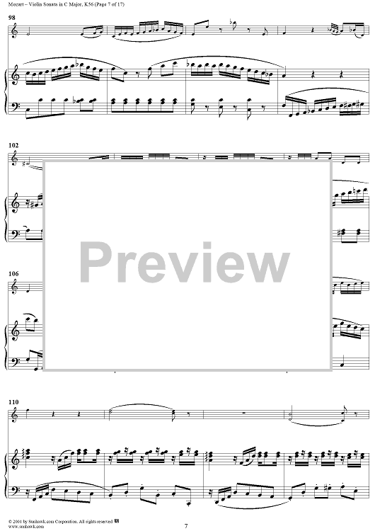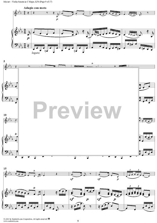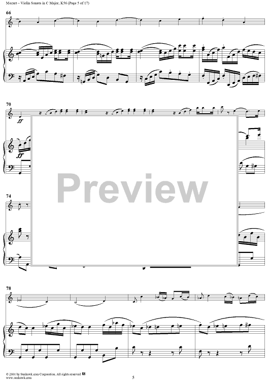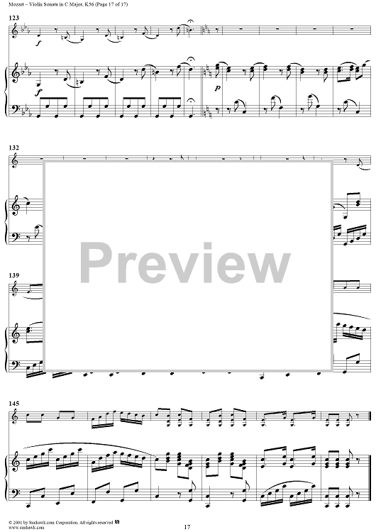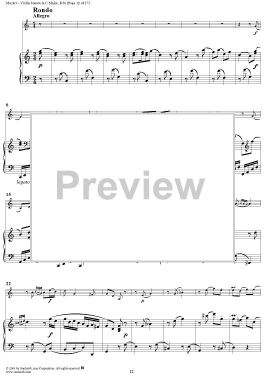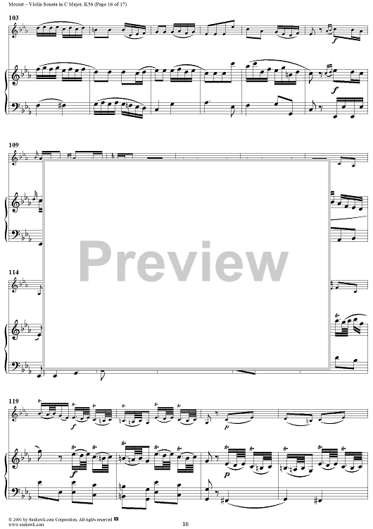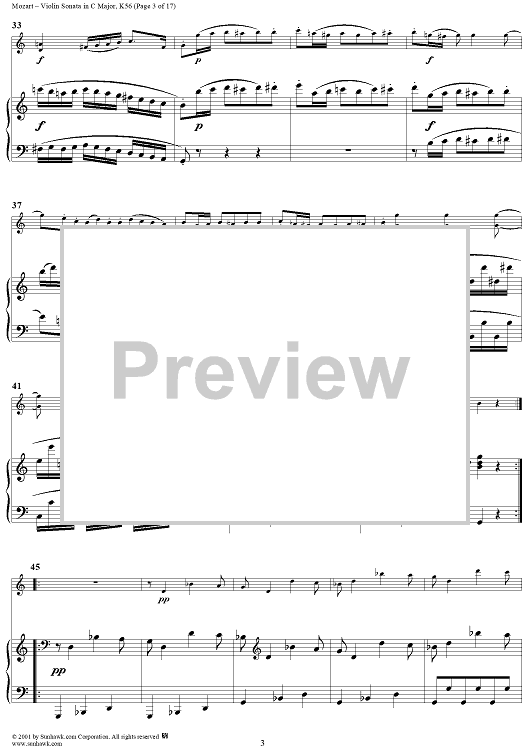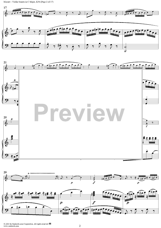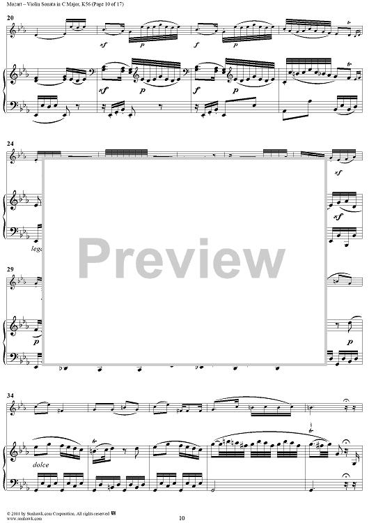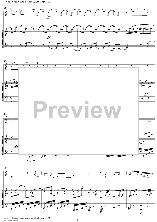 Digital Sheet Music for Violin Sonata in C Major, K56 - Piano Score by Wolfgang Amadeus Mozart scored for Violin/Piano; id:265863