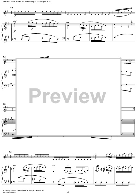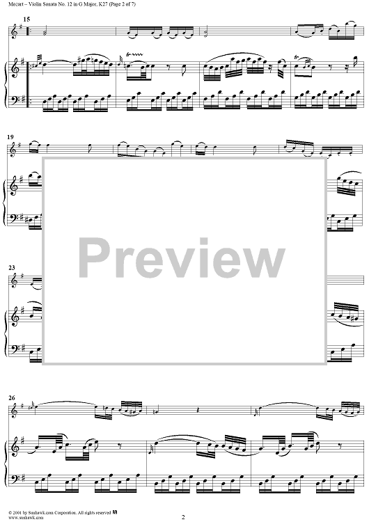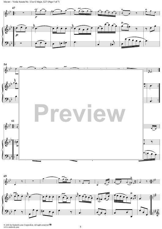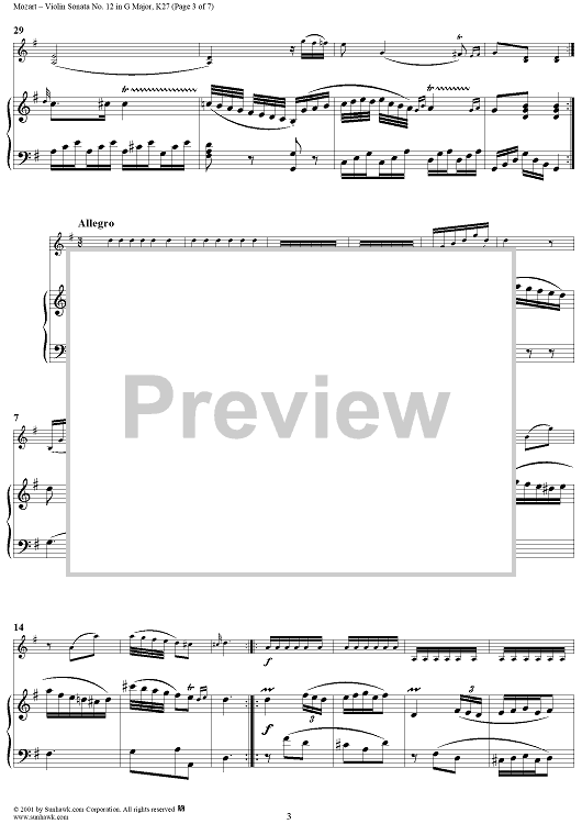 Digital Sheet Music for Violin Sonata No. 12 in G Major, K27 - Piano Score by Wolfgang Amadeus Mozart scored for Violin/Piano; id:277884