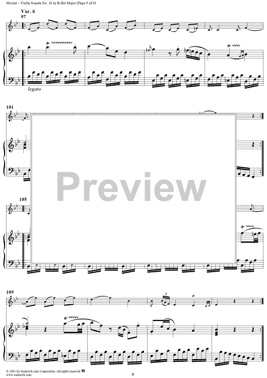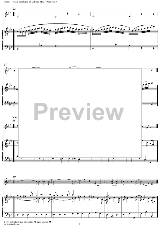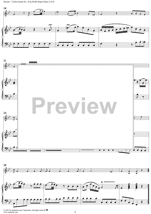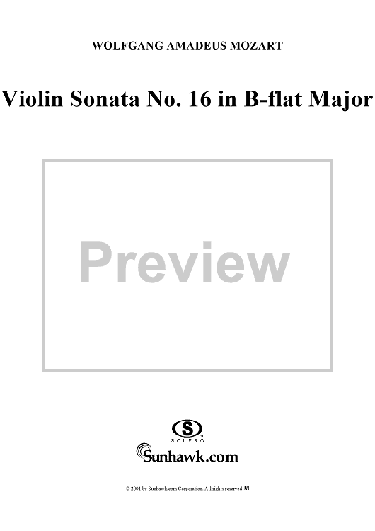 Digital Sheet Music for Violin Sonata No. 16 in B-flat Major, K31 - Piano Score by Wolfgang Amadeus Mozart scored for Violin/Piano; id:270577