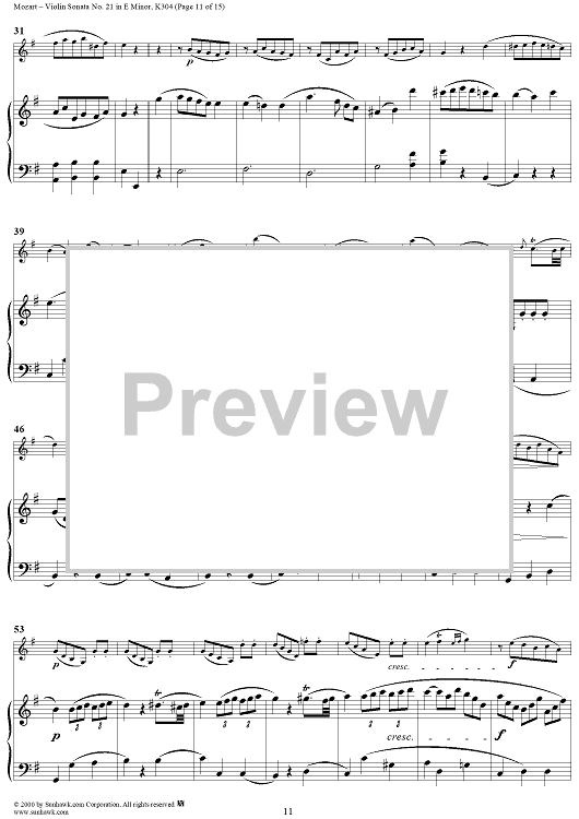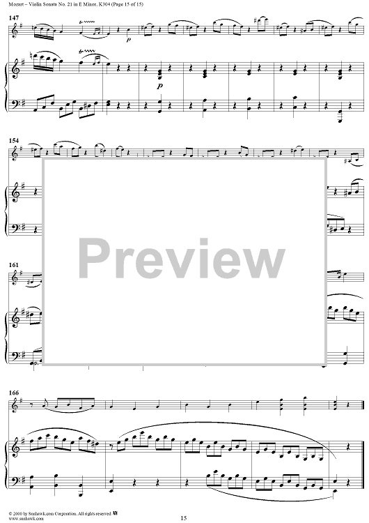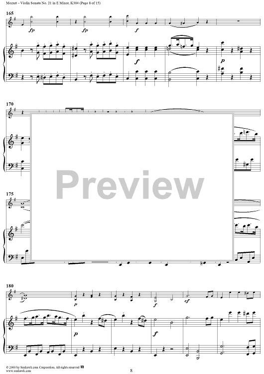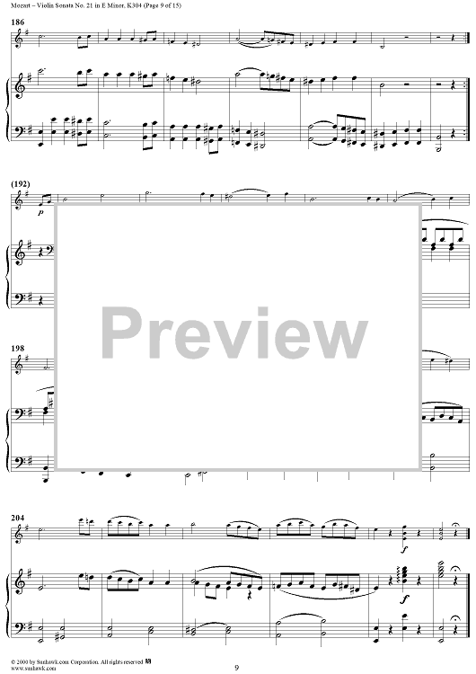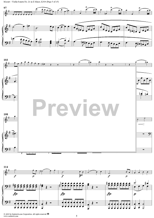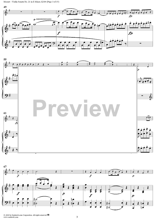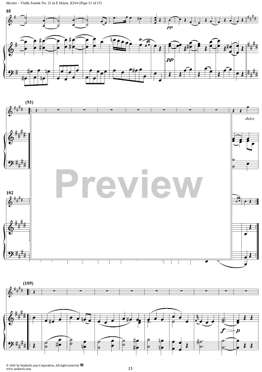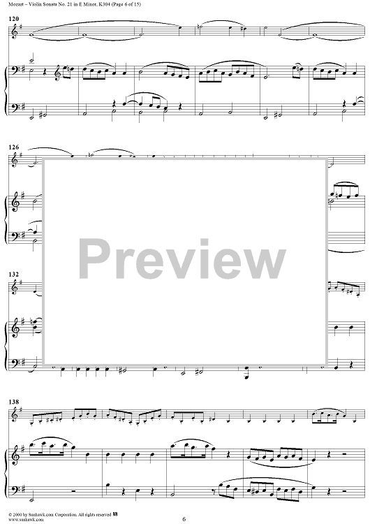 Digital Sheet Music for Violin Sonata No. 21 in E Minor, K300c (K304) - Piano Score by Wolfgang Amadeus Mozart scored for Violin/Piano; id:268275
