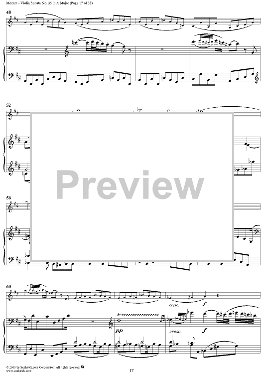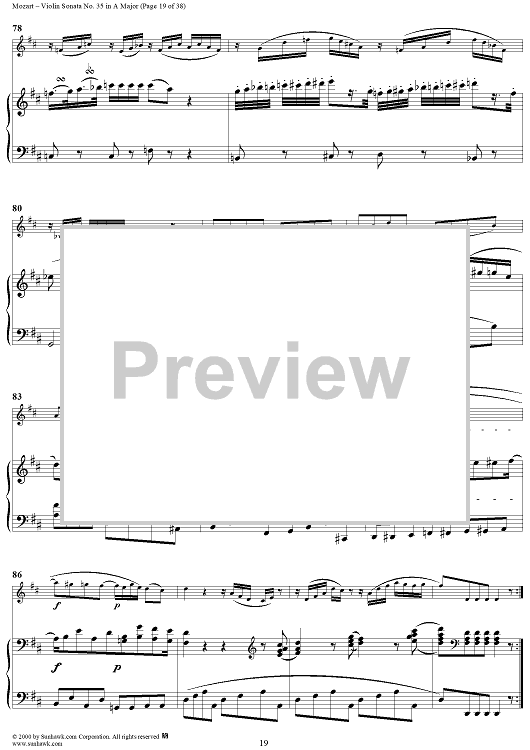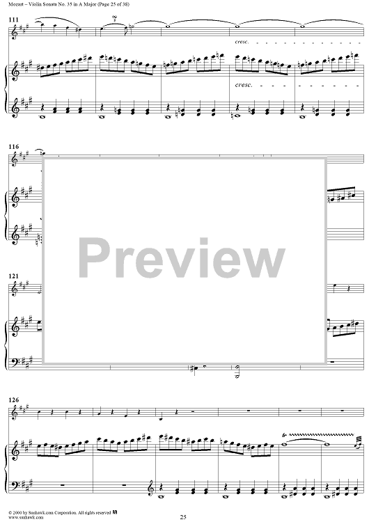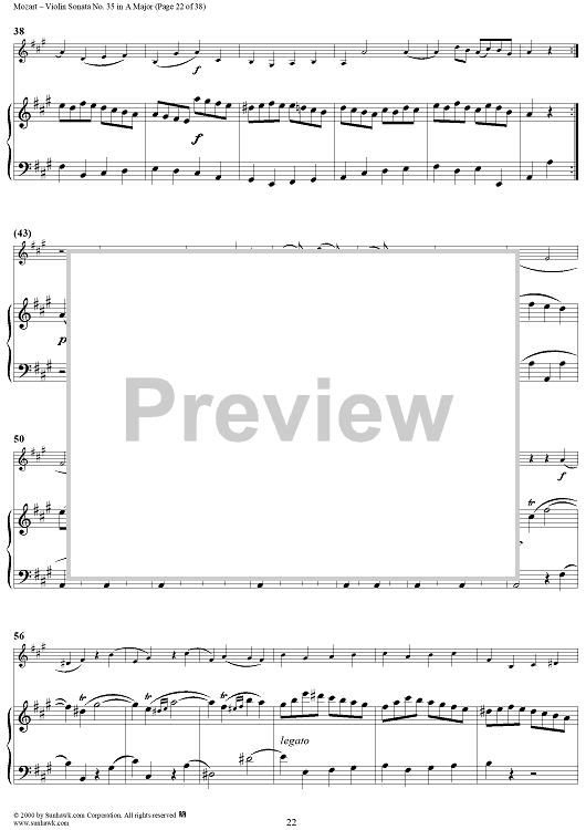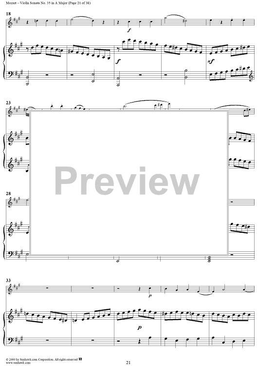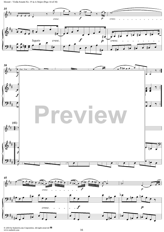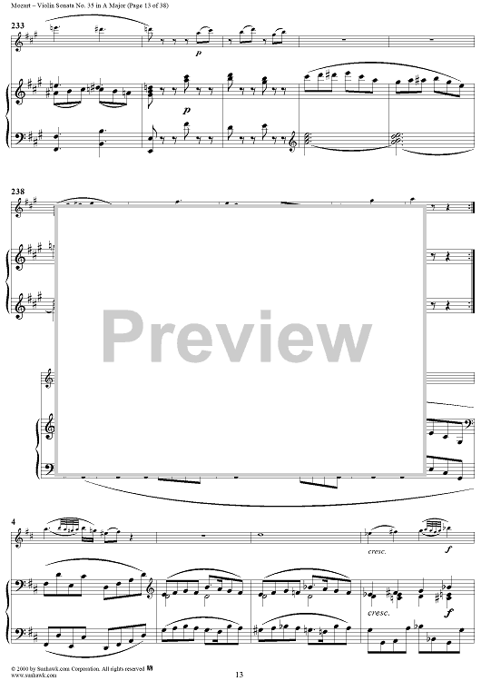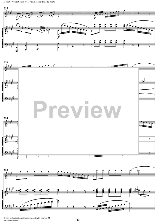 Digital Sheet Music for Violin Sonata No. 35 in A major, K526 - Full Score by Wolfgang Amadeus Mozart scored for Violin/Piano; id:269473