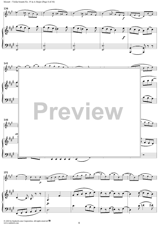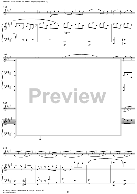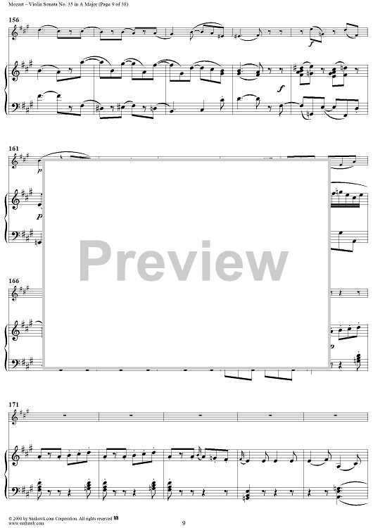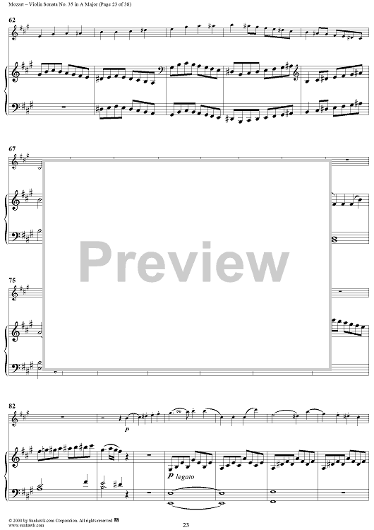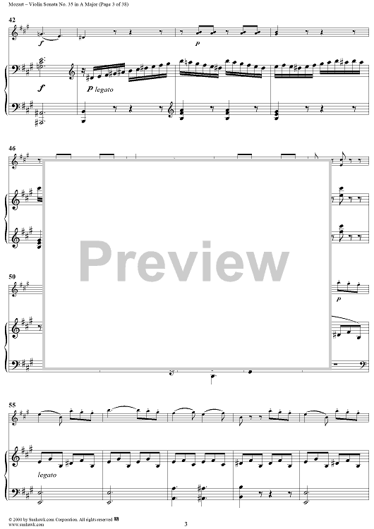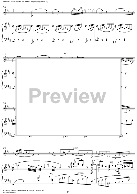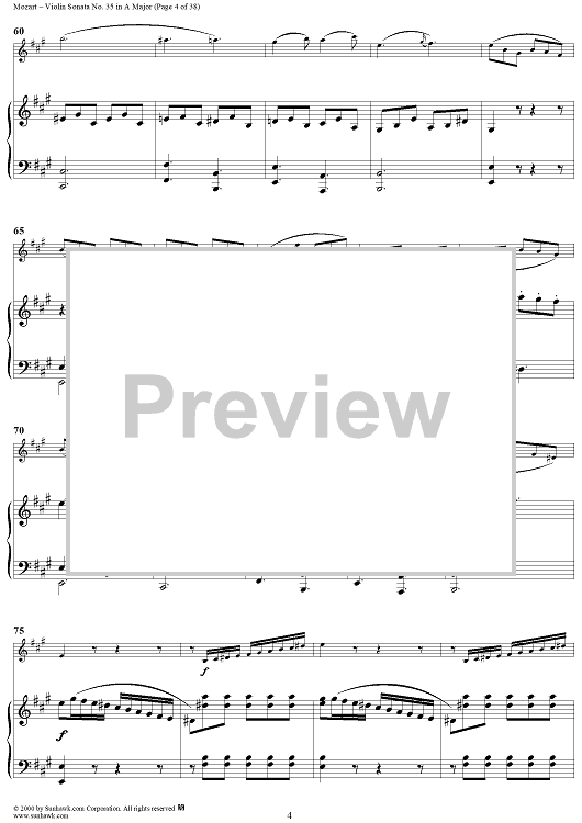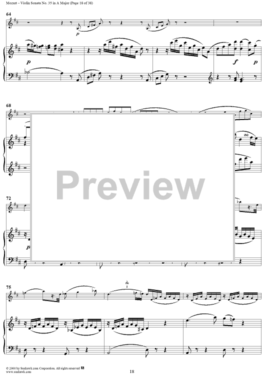 Digital Sheet Music for Violin Sonata No. 35 in A major, K526 - Full Score by Wolfgang Amadeus Mozart scored for Violin/Piano; id:269473