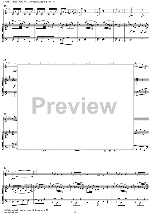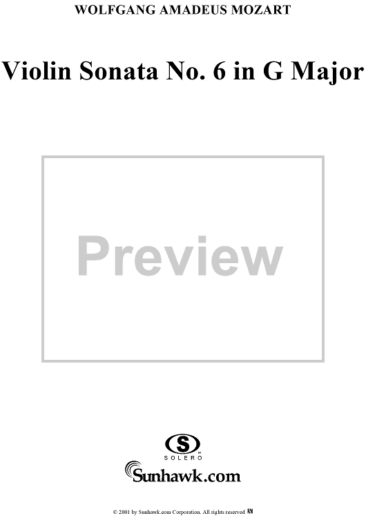 Digital Sheet Music for Violin Sonata No. 6 in G Major, K11 - Piano Score by Wolfgang Amadeus Mozart scored for Violin/Piano; id:263045