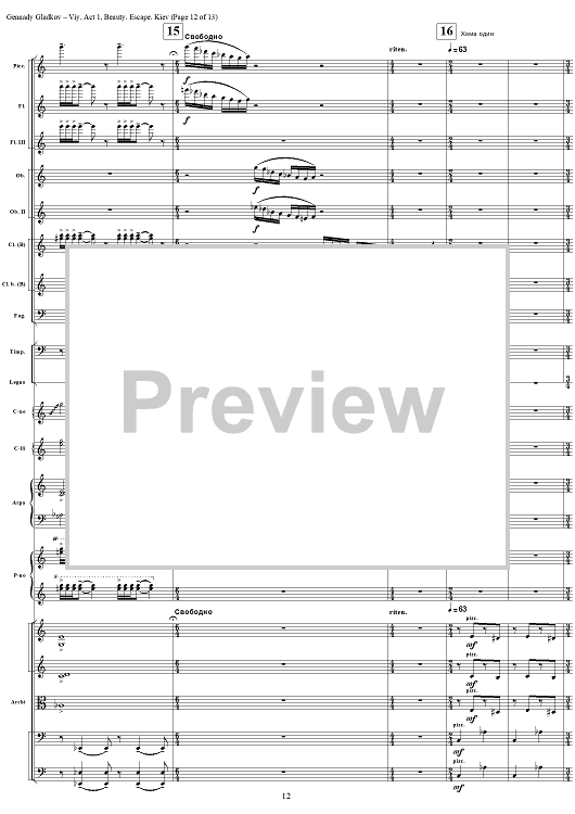 Digital Sheet Music for Viy. Act 1. Beauty. Escape. Kiev by , Gennady Gladkov scored for Orchestra; id:403800