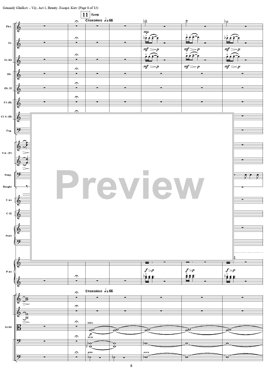 "Viy. Act 1. Beauty. Escape. Kiev" Sheet Music by Gennady Gladkov