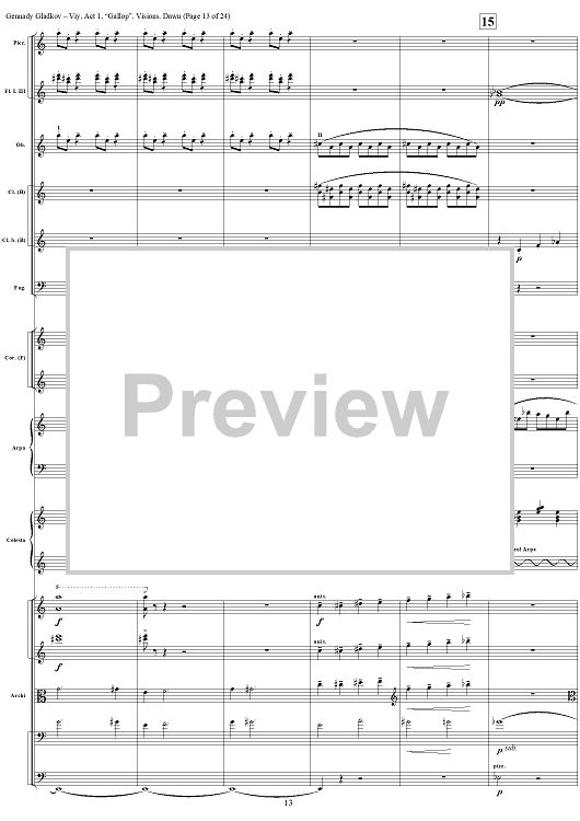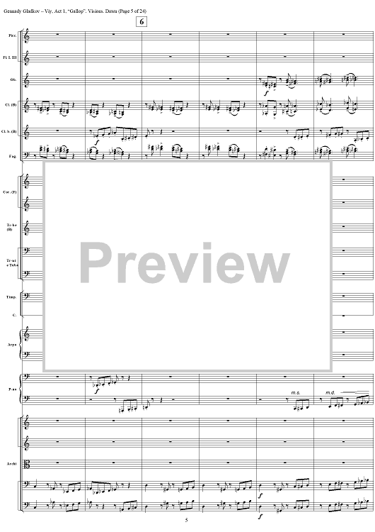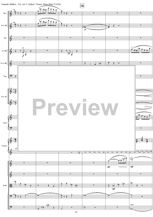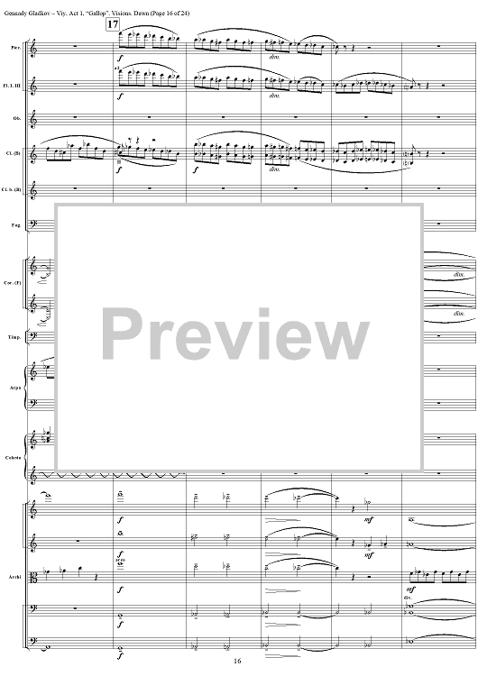 Digital Sheet Music for Viy. Act 1. “Gallop”. Visions. Dawn by , Gennady Gladkov scored for Orchestra; id:403798
