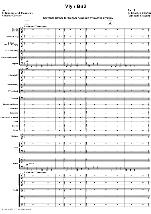 Digital Sheet Music for Viy. Act 1. Khoma and Cossacks by , Gennady Gladkov scored for Orchestra; id:403801