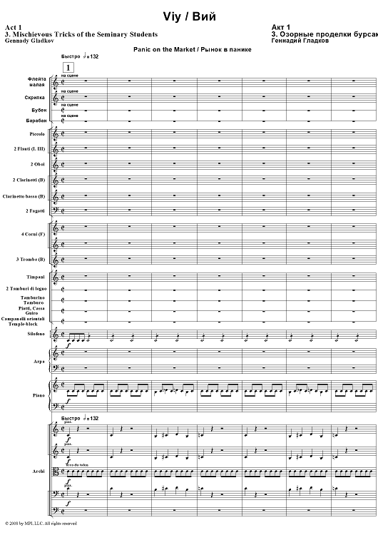 "Viy. Act 1. Mischievous Tricks of the Seminary Students" Sheet Music by Gennady Gladkov