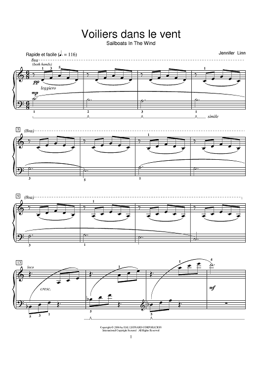 Digital Sheet Music for Voiliers dans le vent (Sailboats In The Wind) by Jennifer Linn scored for Piano; id:392946