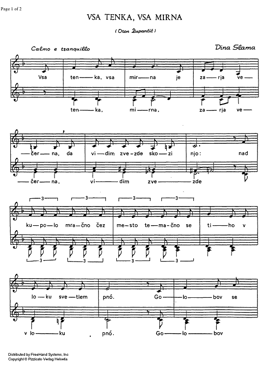 "Vsa Tenka, Vas Mirna" Sheet Music by Dina Slama