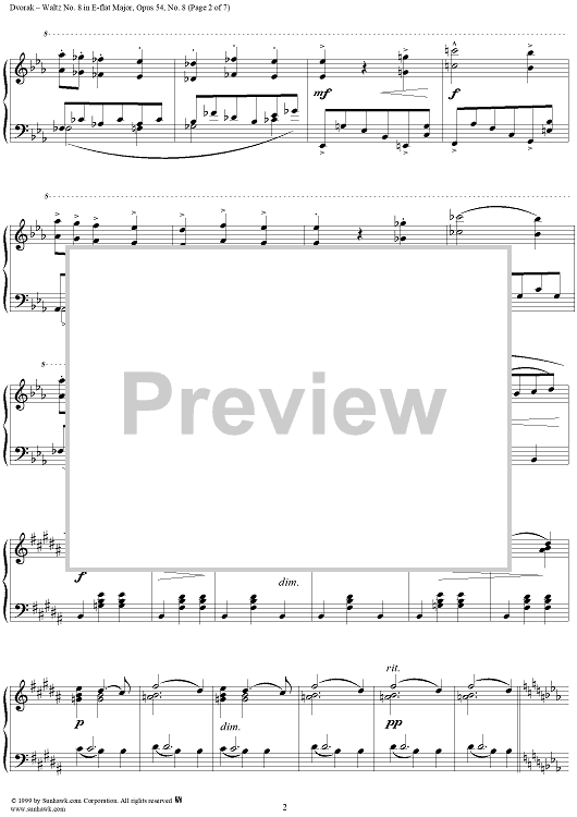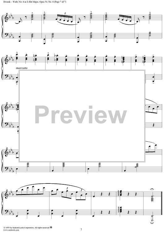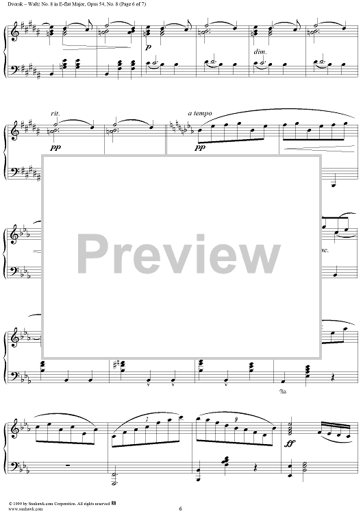 Digital Sheet Music for Waltz no. 8 in E-flat major, op. 54, no. 8 by Antonín Dvorák scored for Piano Solo; id:118365