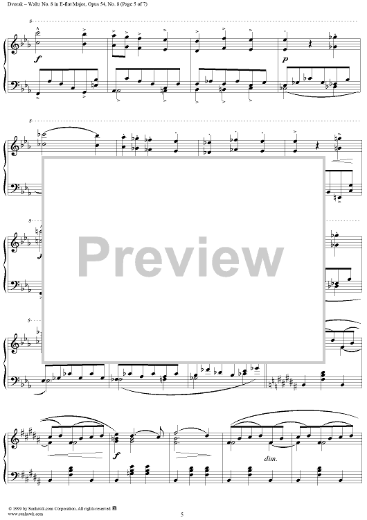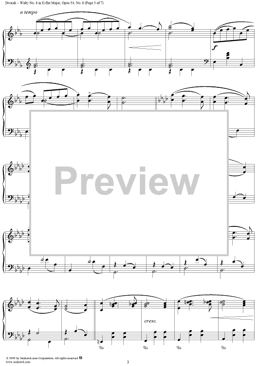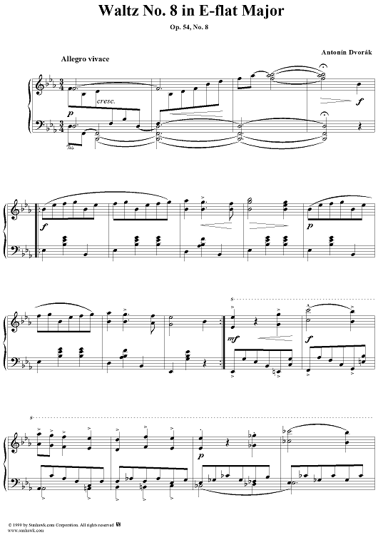 "Waltz no. 8 in E-flat major, op. 54, no. 8" Sheet Music by Antonín Dvorák