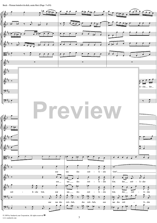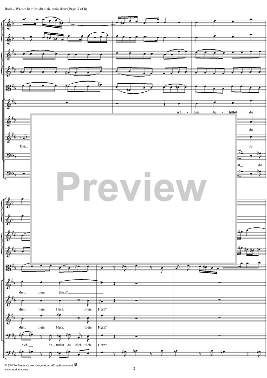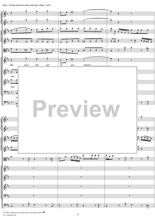 Digital Sheet Music for Warum betrübst du dich, mein Herz - No. 1 from Cantata No. 138 - BWV138 by Johann Sebastian Bach scored for Assorted Instruments; id:250905