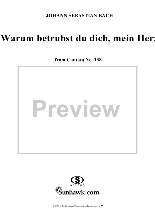 "Warum betrübst du dich, mein Herz - No. 1 from Cantata No. 138 - BWV138" Sheet Music by Johann Sebastian Bach