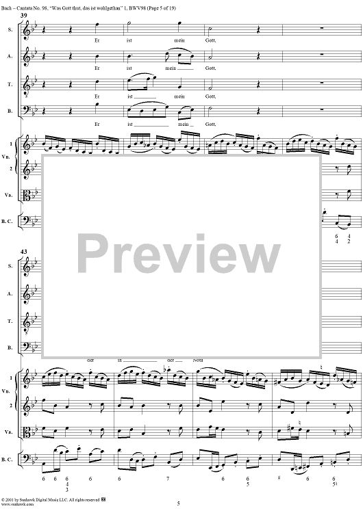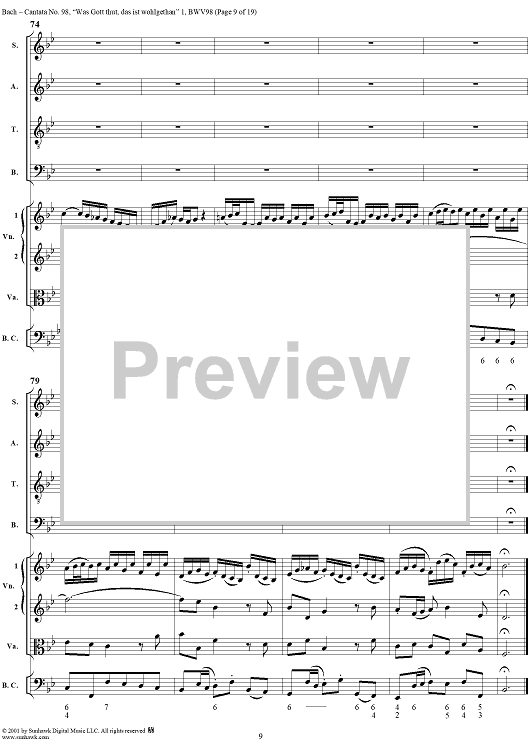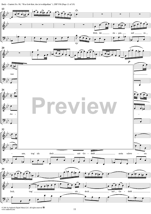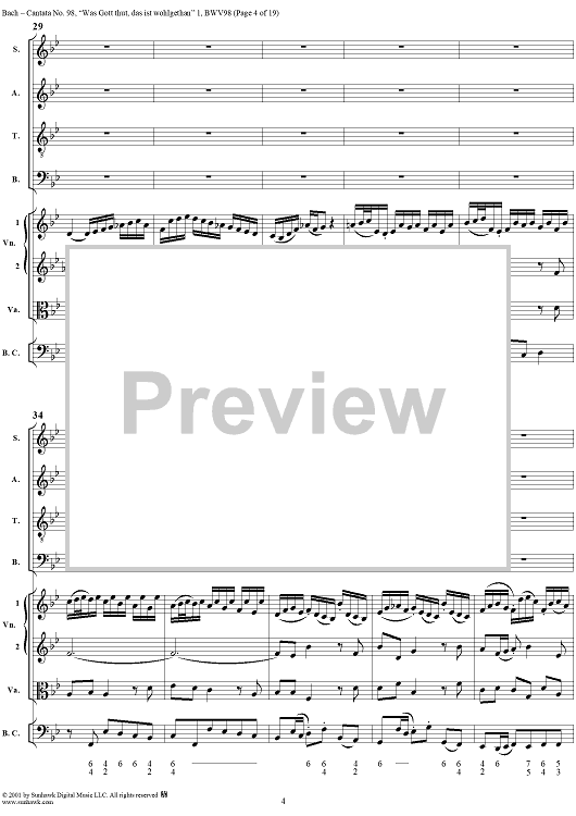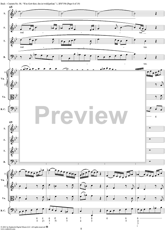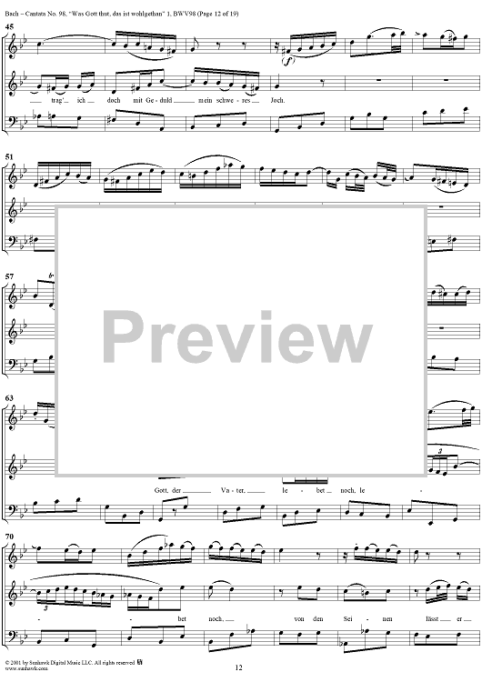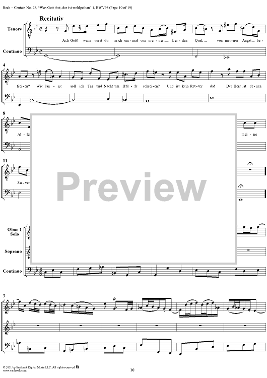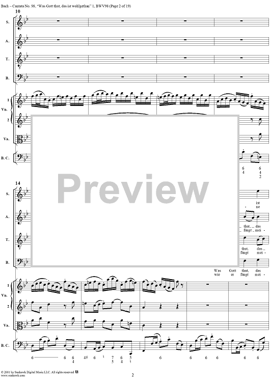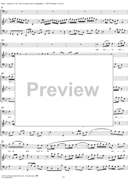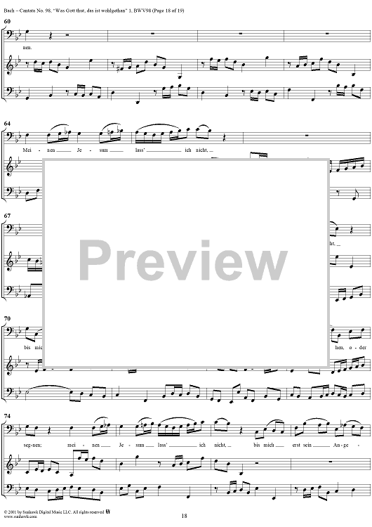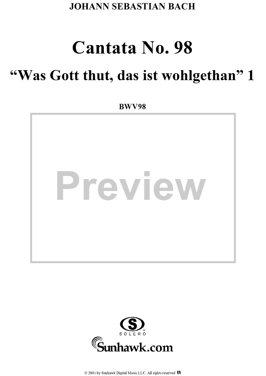 Digital Sheet Music for Was Gott tut, das ist wohlgetan - No. 1 from "Cantata No. 98" - BWV98 by Johann Sebastian Bach scored for Full Score; id:251066