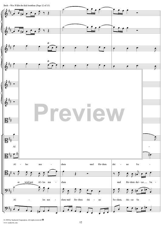 "Was willst du dich betrüben" Sheet Music by Johann Sebastian Bach