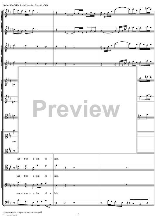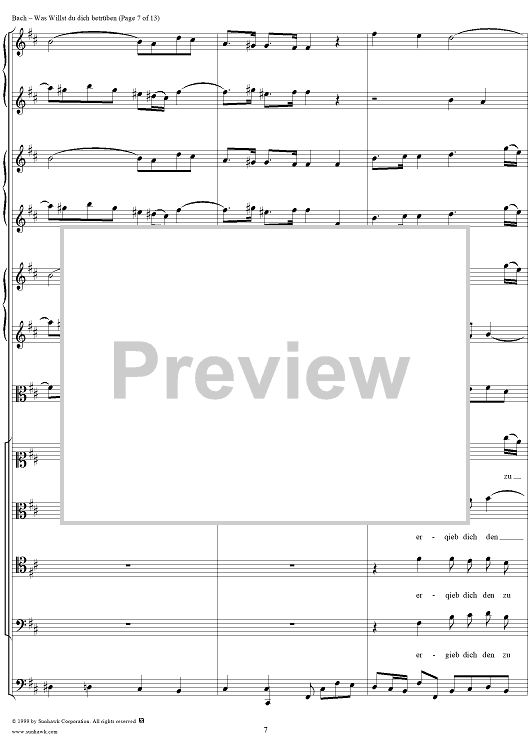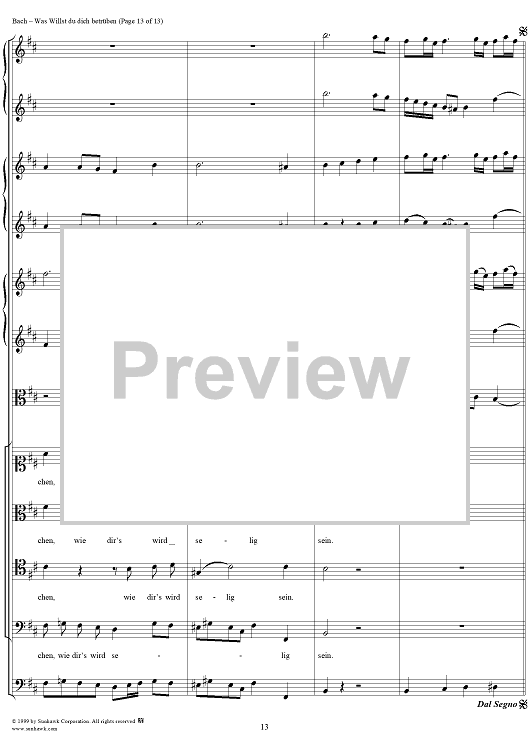 Digital Sheet Music for Was willst du dich betrüben by Johann Sebastian Bach scored for Assorted Instruments; id:272566