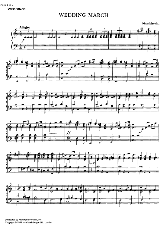 Digital Sheet Music for Wedding March by , Felix Mendelssohn scored for Organ or Piano; id:336145
