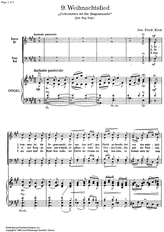 "Weihnachtslied" Sheet Music by Joseph Ferdinand Kloss