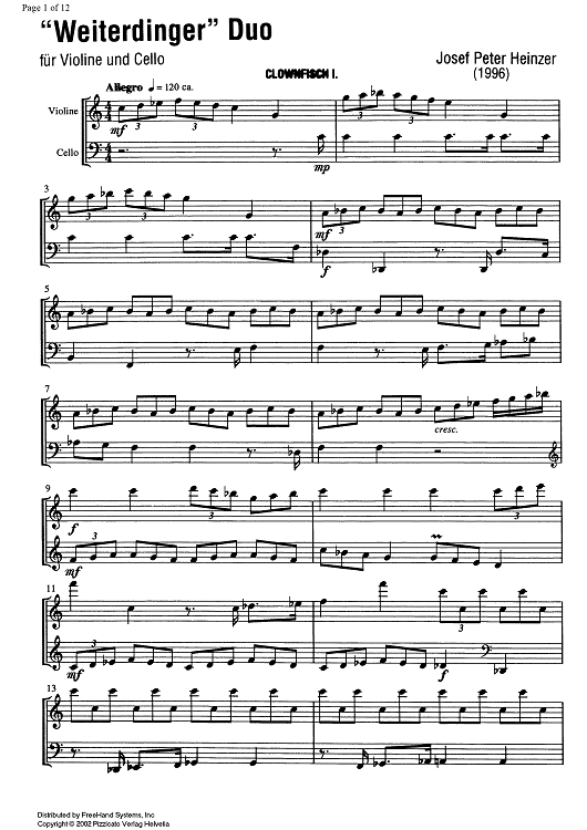 Digital Sheet Music for "Weiterdinger" Duo by , Josef Peter Heinzer scored for Violin/Cello; id:350676