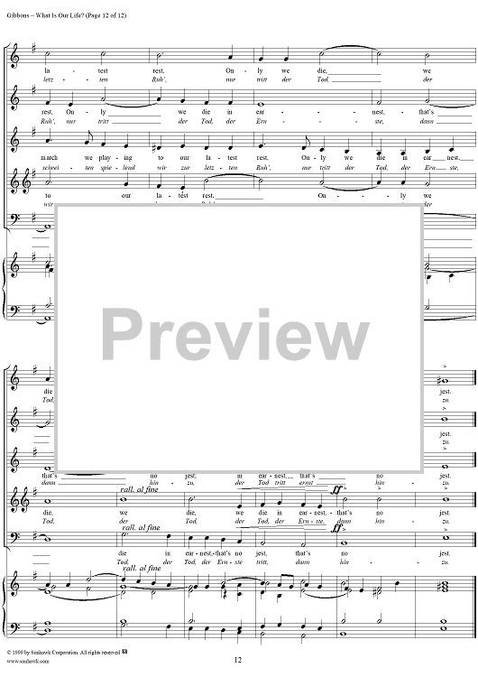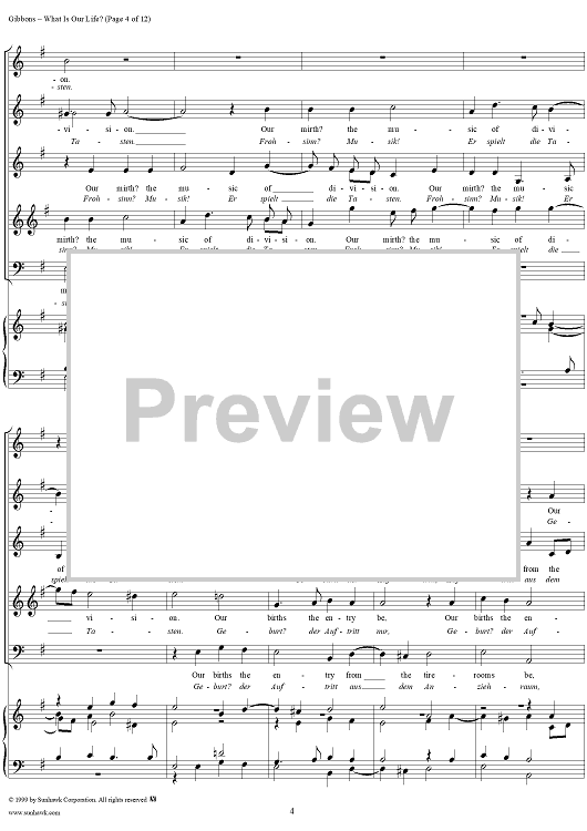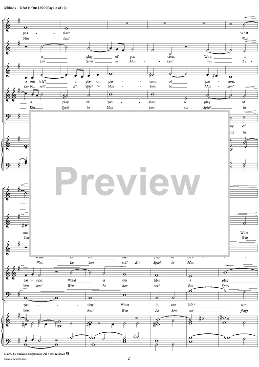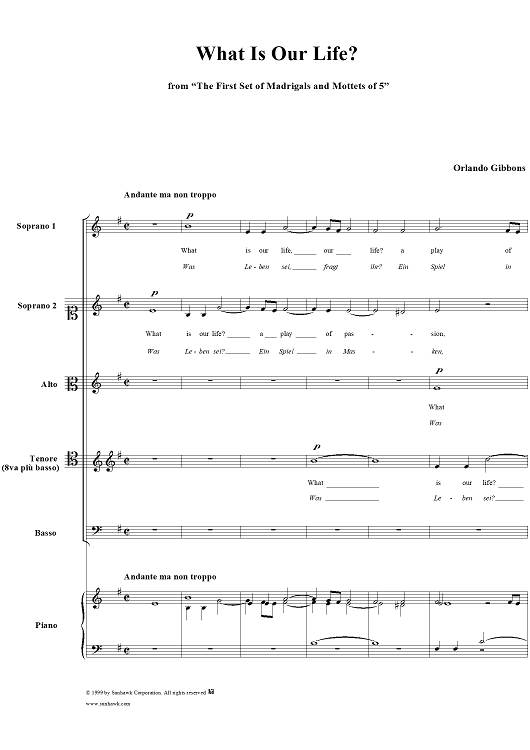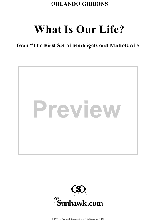 Digital Sheet Music for What is our life? by Orlando Gibbons scored for Mixed Chorus; id:268200