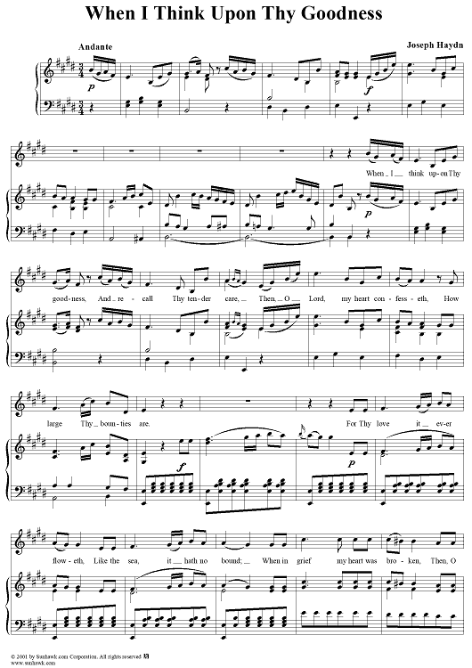 "When I Think Upon Thy Goodness" Sheet Music by Franz Joseph Haydn