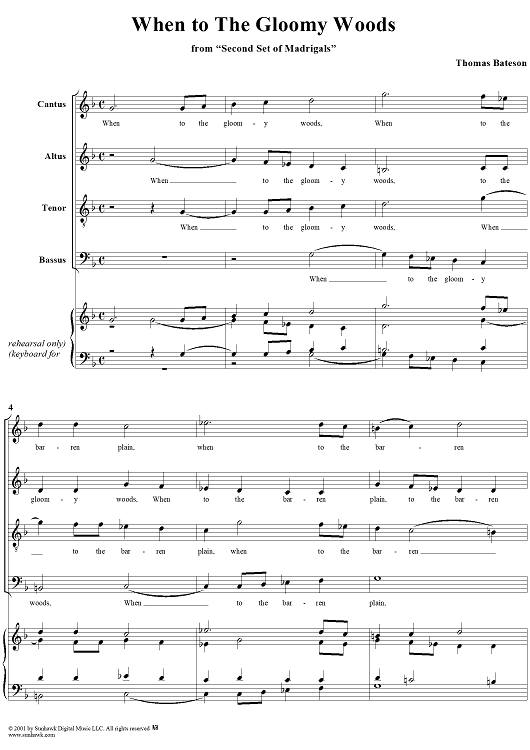Digital Sheet Music for When to The Gloomy Woods by Thomas Bateson scored for Mixed Chorus; id:259600