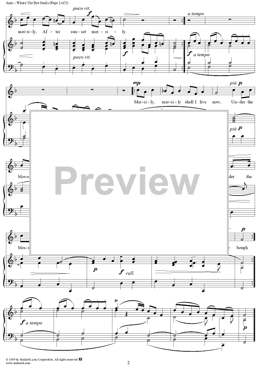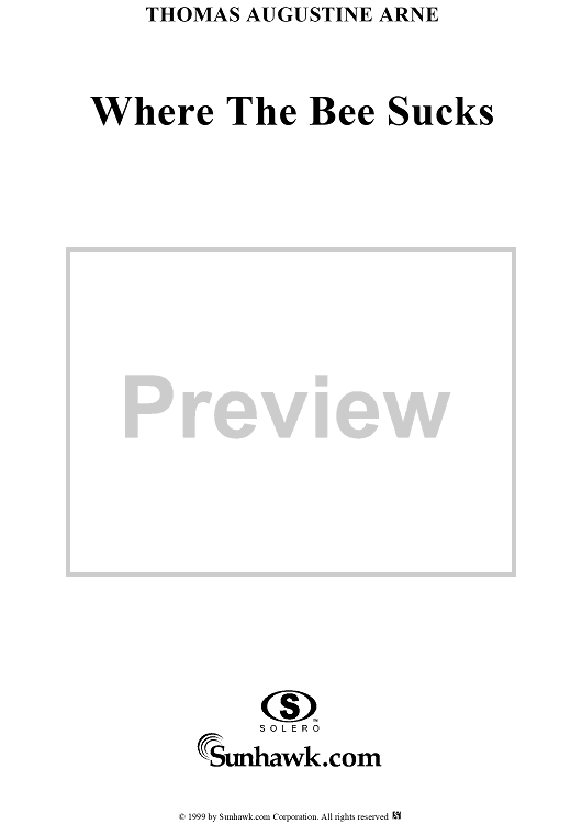 "Where the Bee Sucks" Sheet Music by Thomas Augustine Arne