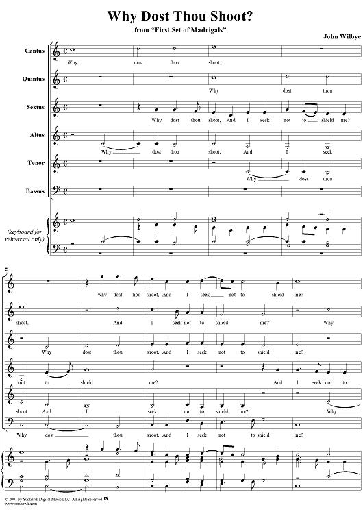 Digital Sheet Music for Why Dost Thou Shoot? by John Wilbye scored for Six-part Mixed Chorus; id:170113