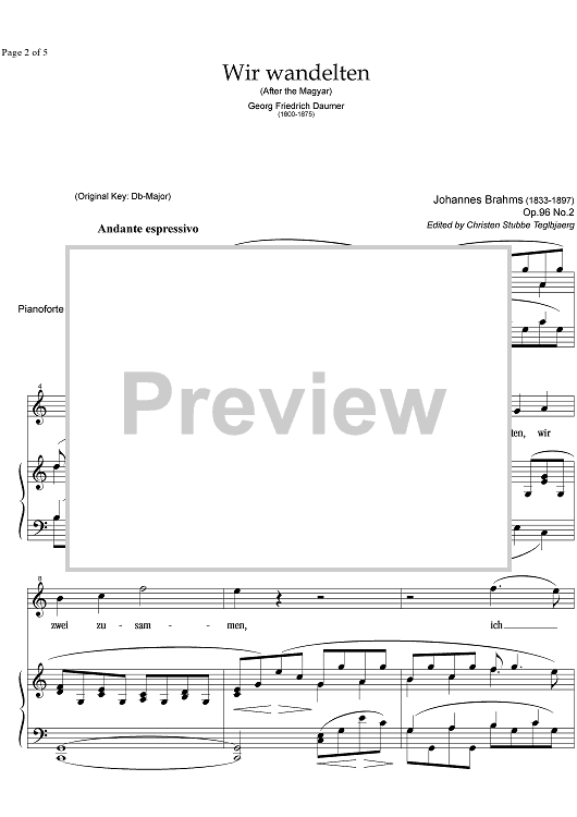 "Wir wandelten Op.96 No. 2" Sheet Music by Johannes Brahms