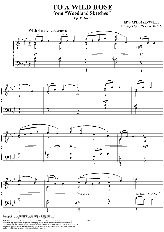 Digital Sheet Music for Woodland Sketches: To A Wild Rose by John Brimhall, Edward MacDowell scored for Easy Piano; id:251676