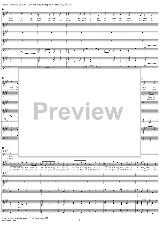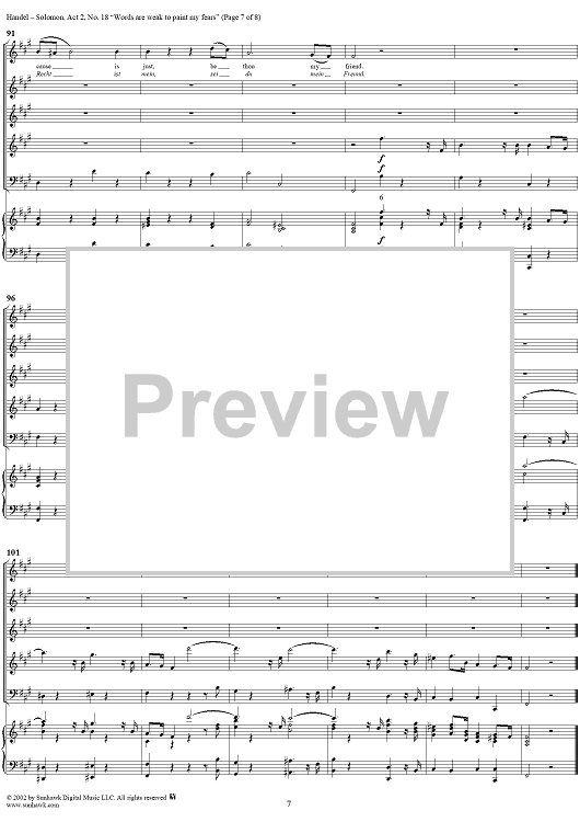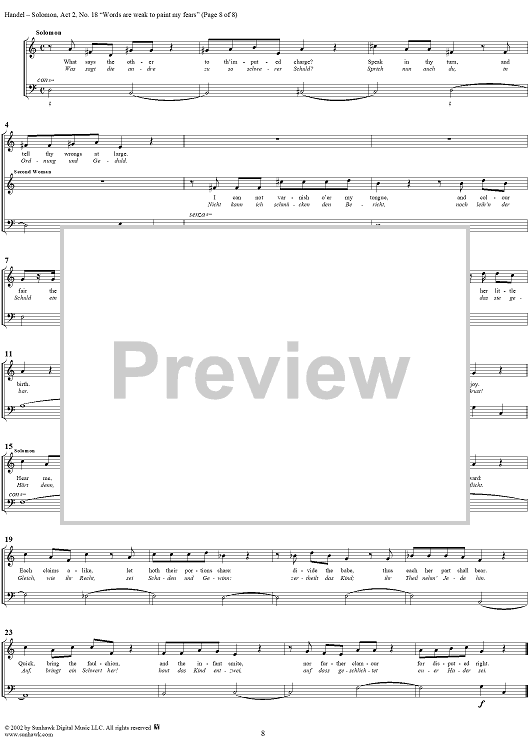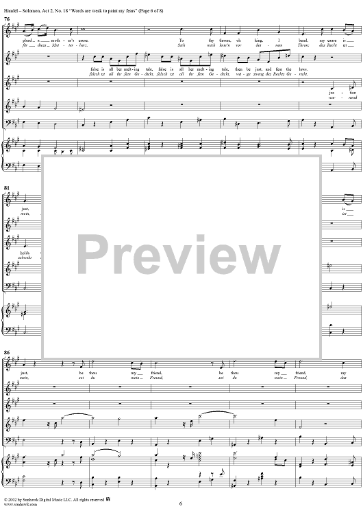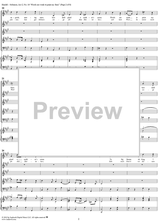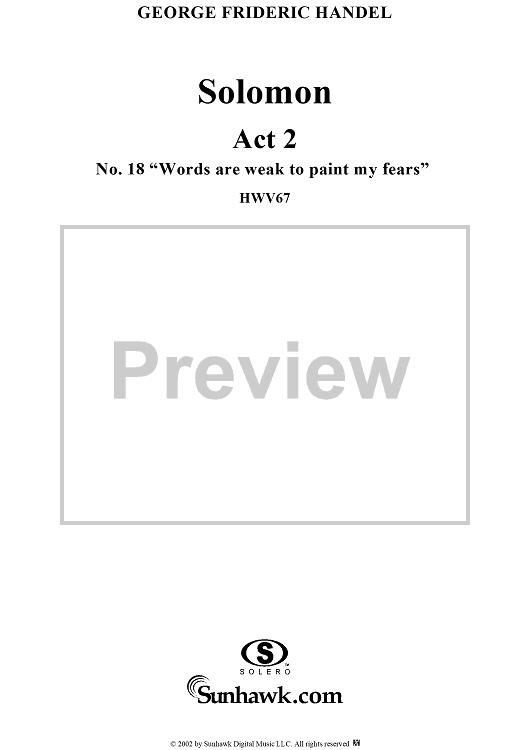Digital Sheet Music for Words are weak to paint my fears, No. 18 from Oratorio "Solomon", Act 2 (HWV67) by George Frideric Handel scored for Soli/SATB/Orchestra; id:290383
