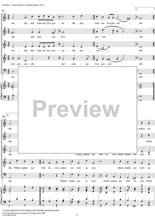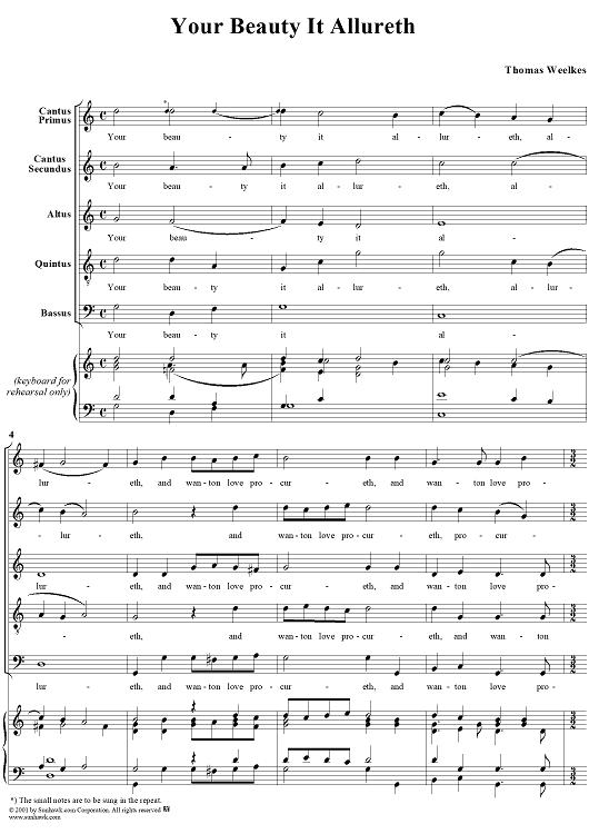 "Your Beauty It Allureth" Sheet Music by Thomas Weelkes