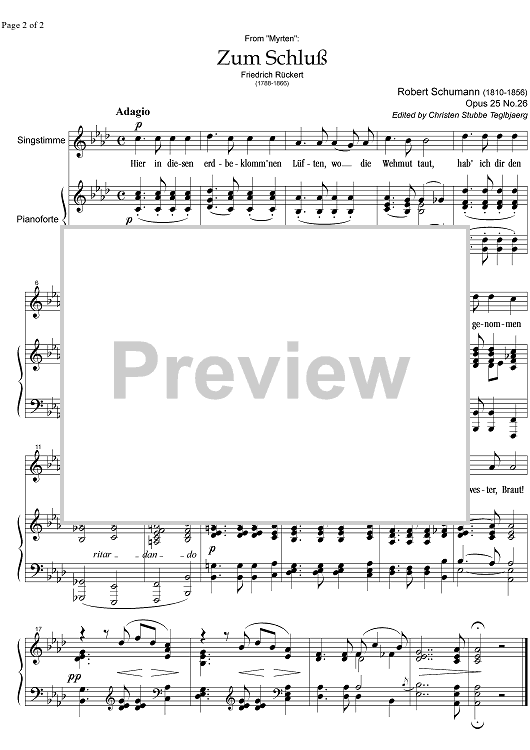 Digital Sheet Music for Zum Schluss Op.25 No.26 by Robert Schumann scored for Soprano or Tenor/Piano; id:332722