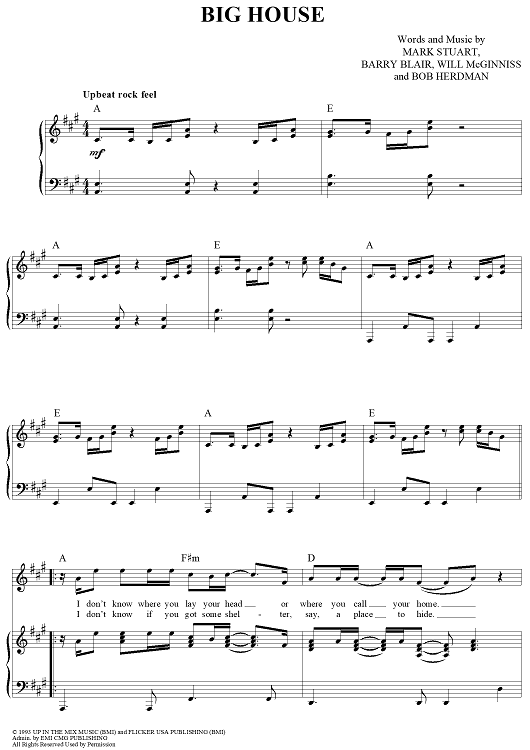 Digital Sheet Music for Big House by Audio Adrenaline, Barry Blair, Bob Herdman, Will McGinniss, Marshmallow scored for Piano/Vocal/Chords; id:392375