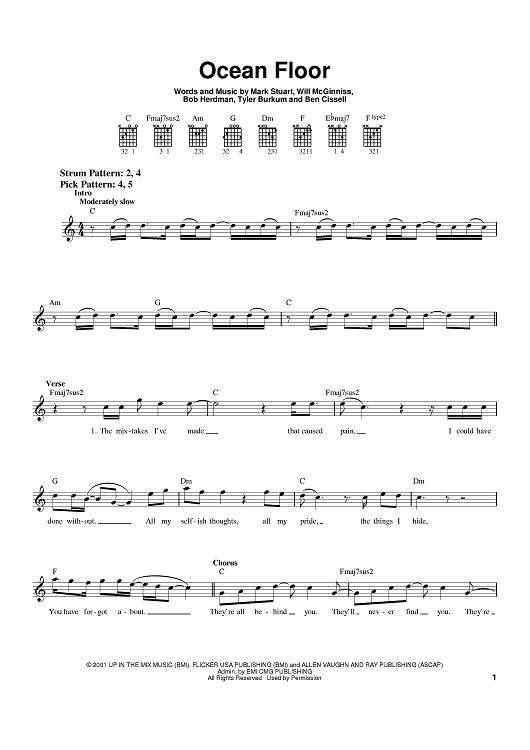 Digital Sheet Music for Ocean Floor by Audio Adrenaline, Tyler Burkum, Ben Cissell, Bob Herdman, Will McGinniss, Marshmallow scored for Easy Guitar; id:398231