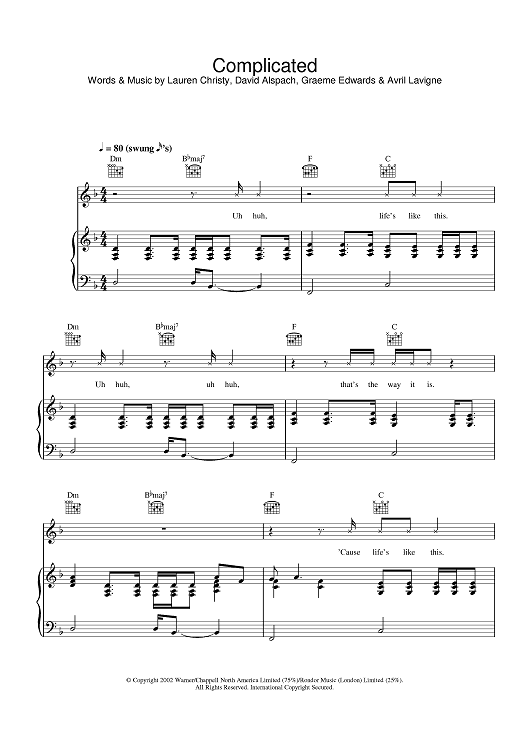 Digital Sheet Music for Complicated by Avril Lavigne scored for Piano/Vocal/Chords; id:377963